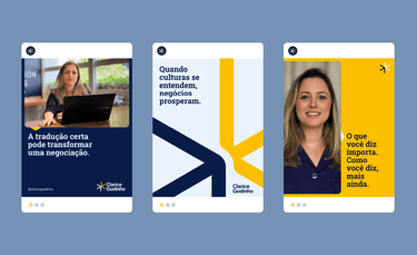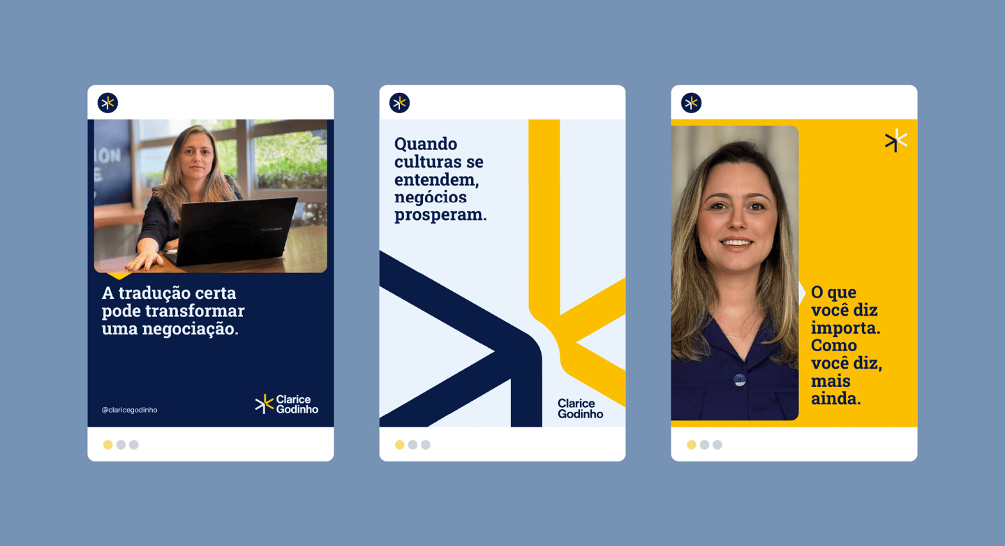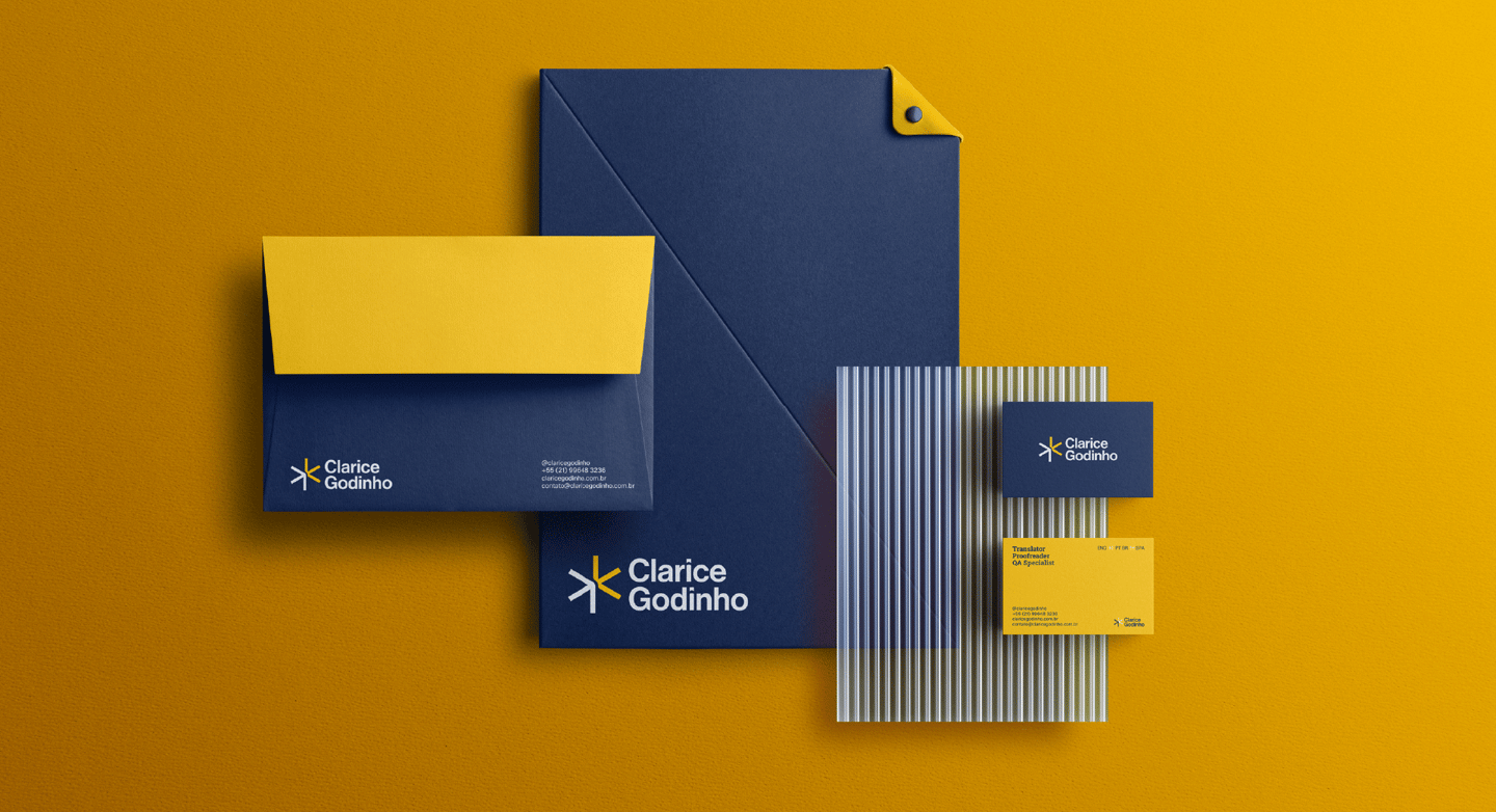 Traduzir visualmente um serviço altamente intelectual e estratégico, sem cair em clichês da tradução literal ou em uma estética excessivamente técnica. A identidade precisava comunicar clareza, precisão e credibilidade, ao mesmo tempo em que expressasse fluidez, conexão cultural e humanidade, posicionando a Clarice Godinho como uma consultoria linguística madura, contemporânea e global.