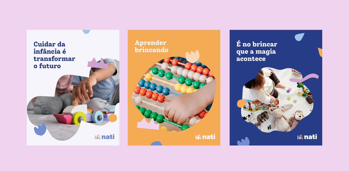 Criar uma identidade visual e uma voz de marca que captassem sua essência acolhedora, criativa e empática. Era essencial refletir a abordagem única de unir ciência e ludicidade no desenvolvimento infantil, garantindo conexão com as famílias e autenticidade na comunicação
