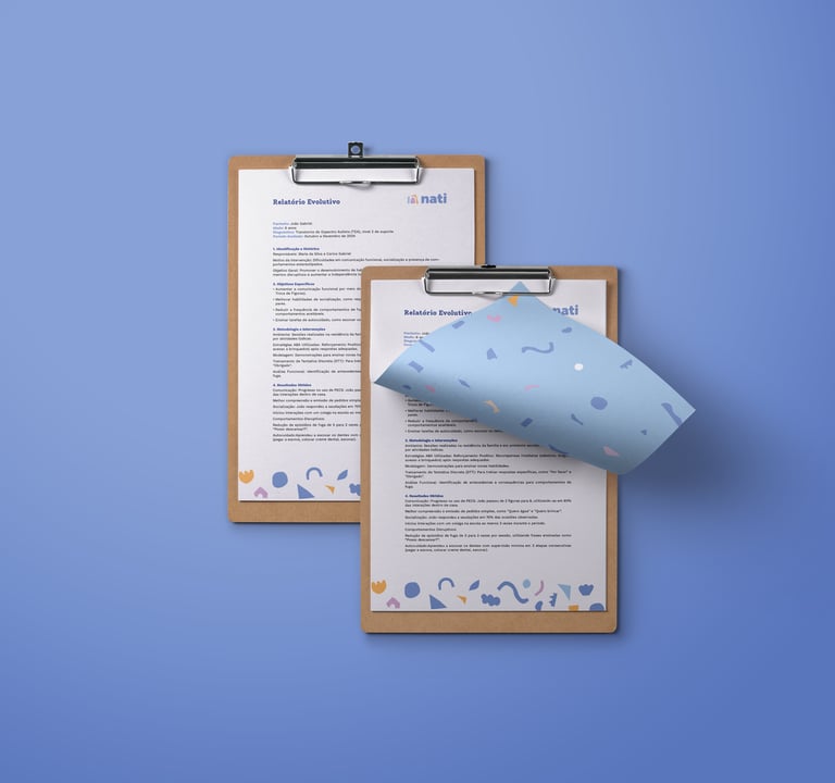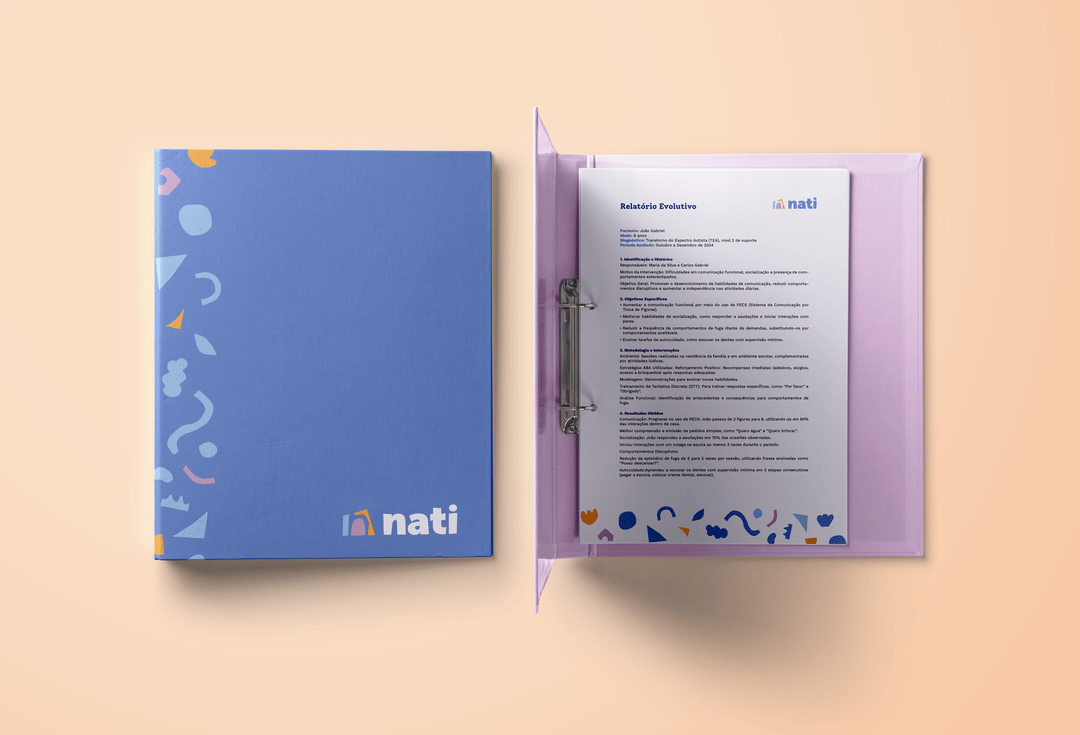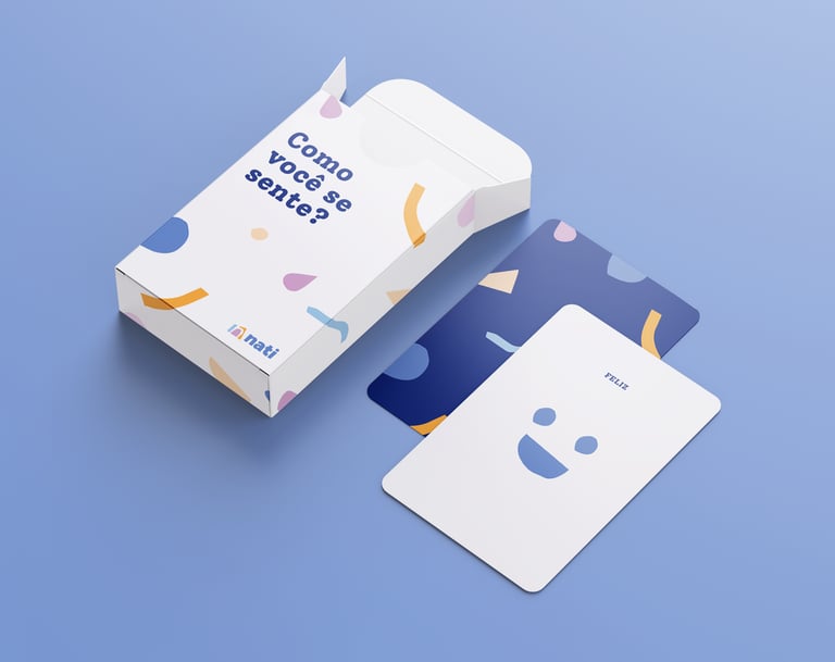 Os elementos visuais do projeto Nati vão além da estética e se tornam ferramentas terapêuticas poderosas. As formas e gráficos foram projetados para serem adaptáveis, transformando-se em jogos interativos, personagens lúdicos e materiais de apoio. Esses elementos não apenas enriquecem o ambiente terapêutico, mas também servem como instrumentos de conexão entre a criança e o psicólogo ou entre a criança e os pais, fortalecendo vínculos e promovendo o aprendizado de forma leve e envolvente.