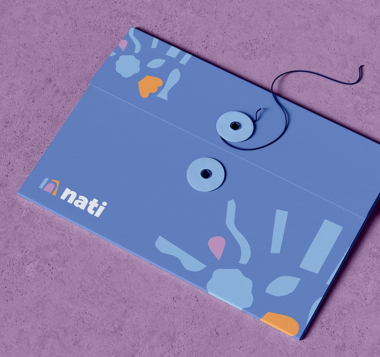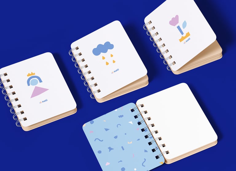 Combinamos um processo criativo artesanal com técnicas digitais, usando arte terapia para capturar a essência única da marca. Essa abordagem traduziu emoções e valores em uma identidade visual autêntica, moderna e acolhedora, fortalecendo a conexão da Nati com seu público de maneira inspiradora e significativa.
