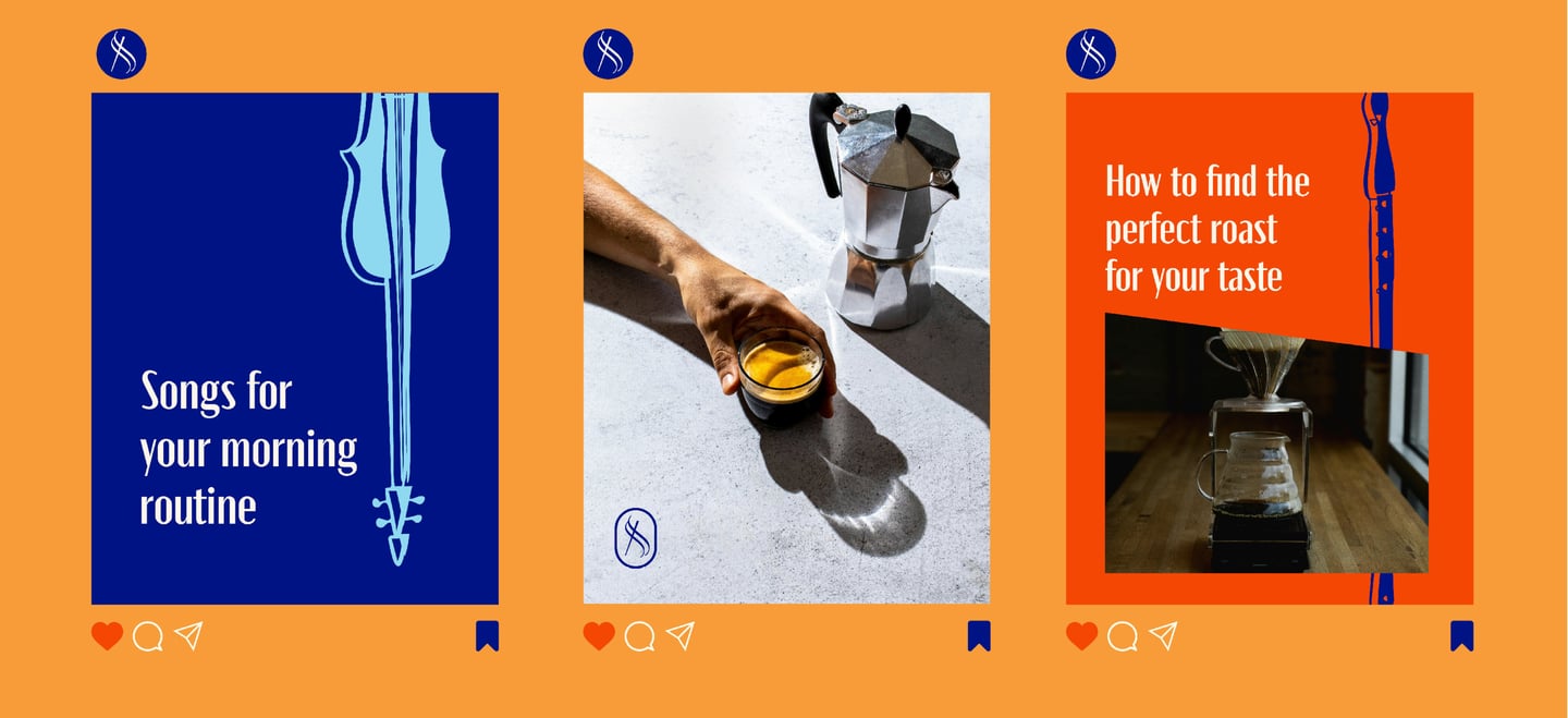 A marca ganhou vida ao integrar seus valores centrais — música, café e harmonia — em uma identidade visual coesa e única. O design cuidadoso enfatiza elegância, acessibilidade e autenticidade, incorporando elementos de musicalidade, sustentabilidade e o prazer sensorial do café.