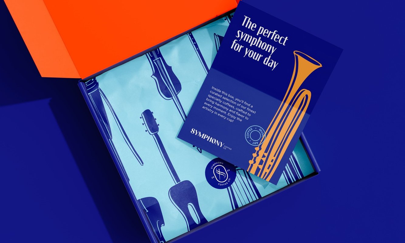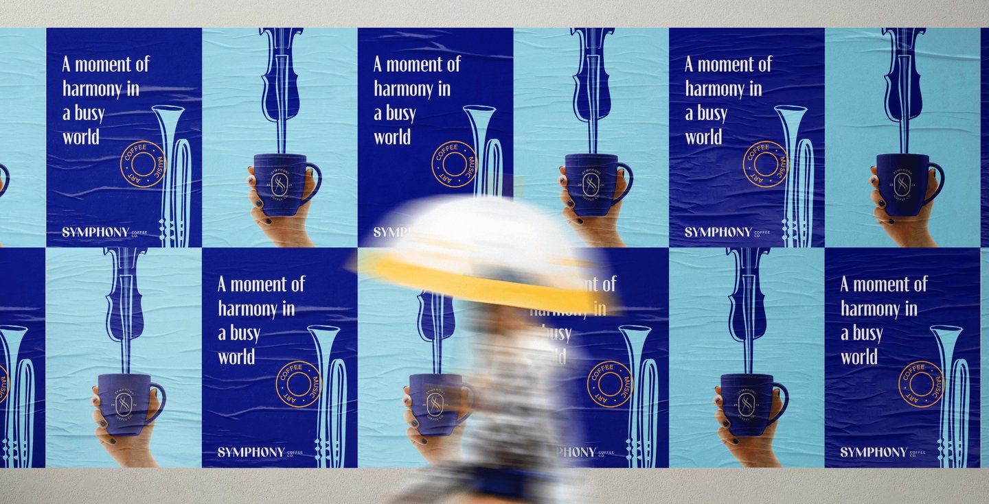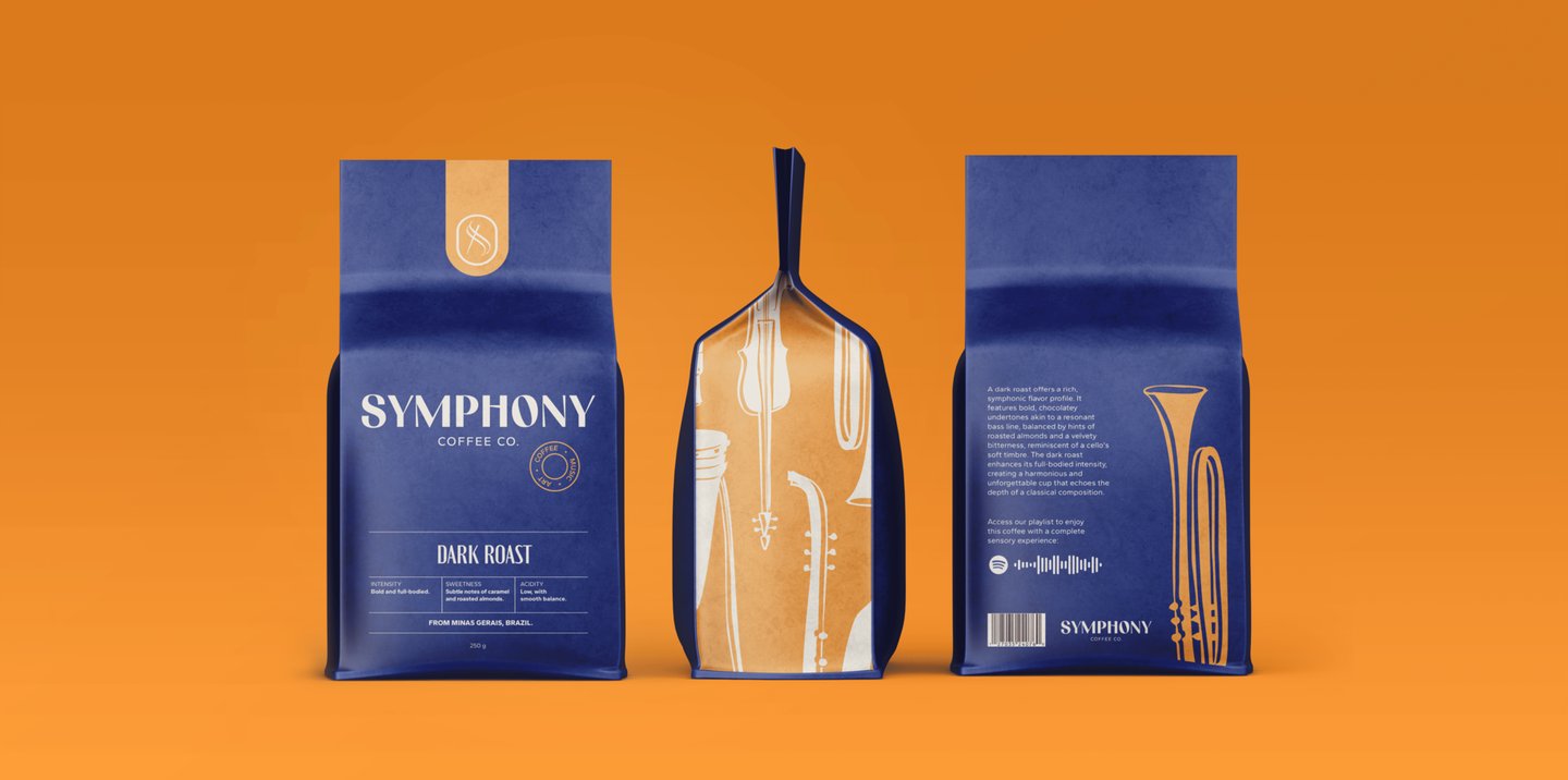 O desafio ao criar a identidade da Symphony Coffee Co. foi harmonizar sua paixão por café e música em uma identidade única que transmitisse elegância e acessibilidade. O objetivo era comunicar qualidade, sustentabilidade e conexão emocional em cada elemento visual e mensagem, garantindo que a marca ressoasse com os clientes tanto sensorial quanto emocionalmente.